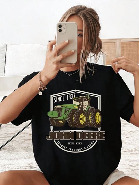 Womens John Deere Tractor Vintage Printed Cotton Regular Fit Short Sleeve Casual T Shirt - Retro Graphic Tee For Summer Daily Wear, Gift For Her,XL
